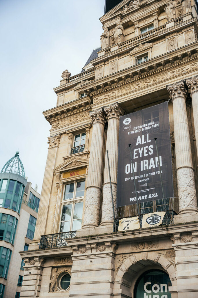 Avec cette bâche “All Eyes on Iran”, installée par la Ville de Bruxelles, nous envoyons un message simple : nous regardons, nous comprenons et nous prenons position. Une ville libre ne peut pas rester neutre face à une dictature.
